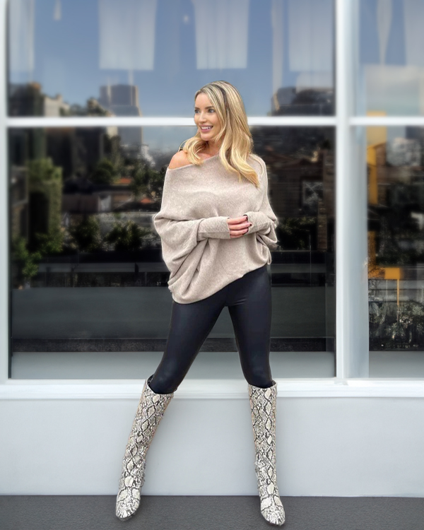 The solid colour and plain style for this oversized jumper is simple but not boring.You can wear this JAKI signature style on the shoulder as an elegant cowl neck or off-the-shoulder, meet your different dressing needs.